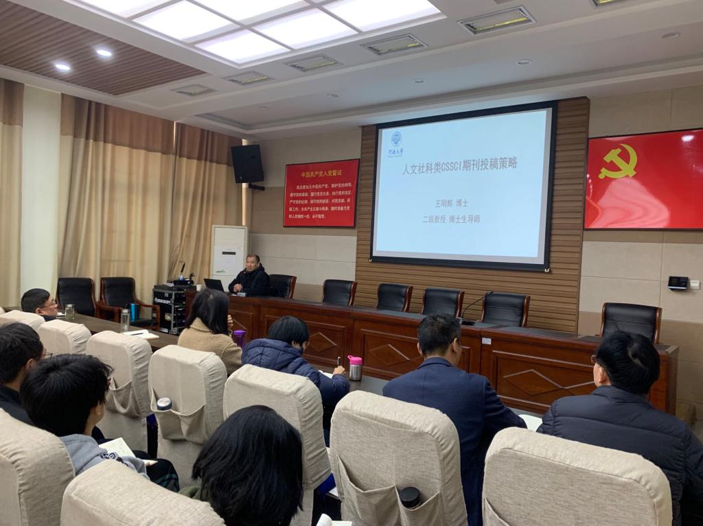 时间:2023-12-03 12:12:04 来源: 作者: 阅读: 次12月3日上午,应教育科学学院邀请,河南大学王明辉教授在教科楼301报告厅作题为“人文社科类CSSCI期刊投稿策略”的学术报告。报告会由该院院长何安明主持,教科院全体教师及部分研究生聆听了报告。