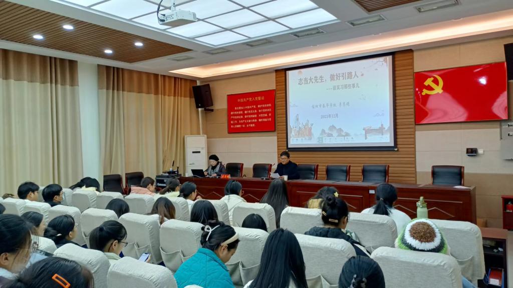 2023年12月2日上午,信阳市春华学校副校长李秀娟应邀在教科301,为我院2021级本科生做了题为《志当大先生、做好引路人--谈实习那些事》的报告。教育学、教育技术学专业学生在现场聆听了报告,学前教育和心理学专业学生在线上聆听了报告。
