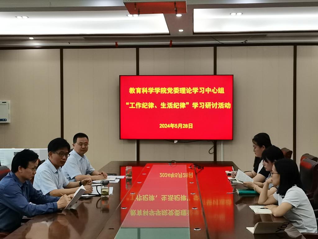 围绕“六大纪律”开展集中学习研讨活动。教育科学学院党委理论学习中心组于5月16日、24日、28日,分别围绕“政治纪律、组织纪律”、“廉洁纪律、群众纪律”和“工作纪律、生活纪律”开展集中学习研讨活动。会上,党员处级干部、党员科级干部、党支部书记、专职辅导员结合自身工作与学习实际,积极发言研讨。