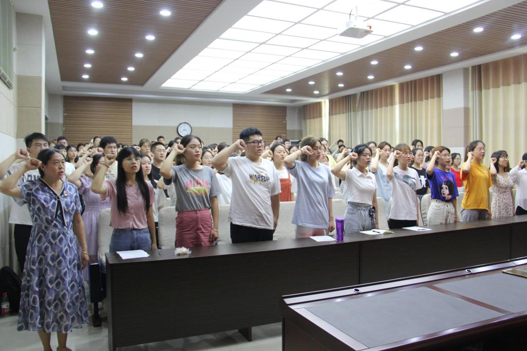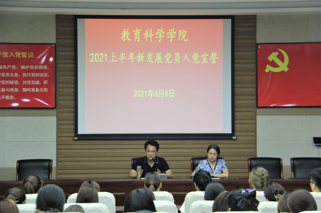 时间:2021-06-11 09:28:15 来源: 作者: 阅读: 次6月8日下午,教育科学学院于教科301会议室举行2021年上半年新发展党员宣誓大会和党员重温入党誓词活动。院党委副书记李贵杰、组织员张纪娥、全体学生党员以及本期发展的53名预备党员参加此次大会。会议由张纪娥主持。