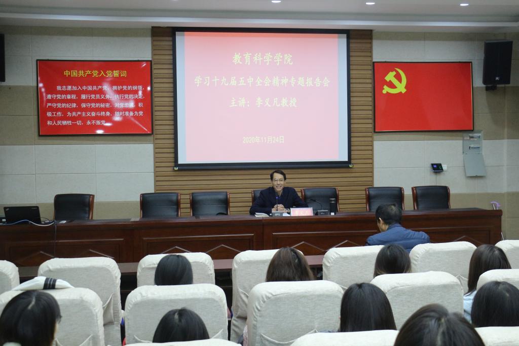 11月24日下午,教育科学学院在教科楼301集中学习十九届五中全会精神。由李义凡教授为教科院全体教职工及本期发展对象解读,学院党委书记李辉主持。
