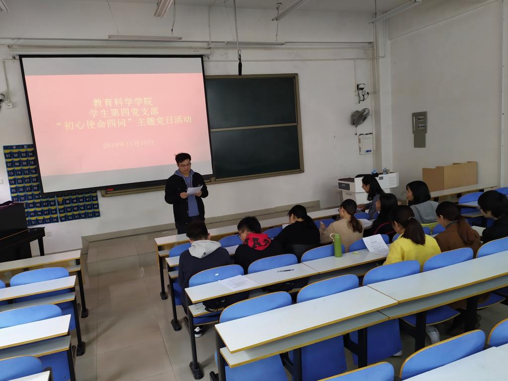 【不忘初心、牢记使命】教育科学学院学生第四党支部开展“初心使命四问”主题党日活动