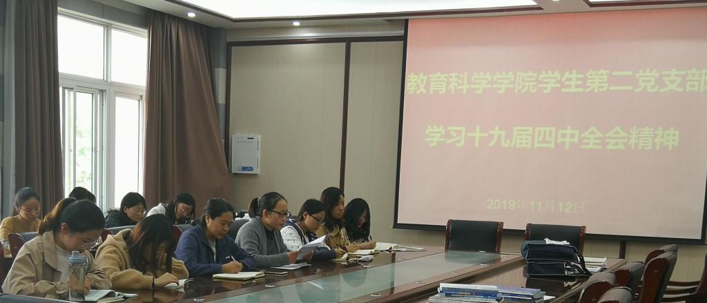 时间:2019-11-13 23:36:41 来源: 作者: 阅读: 次11月12日下午三点,教育科学学院学生第二党支部于教科楼402会议室召开学习党的十九届四中全会精神会议。会议由支部书记张纪娥主持。学生第二党支部全体党员参与学习。