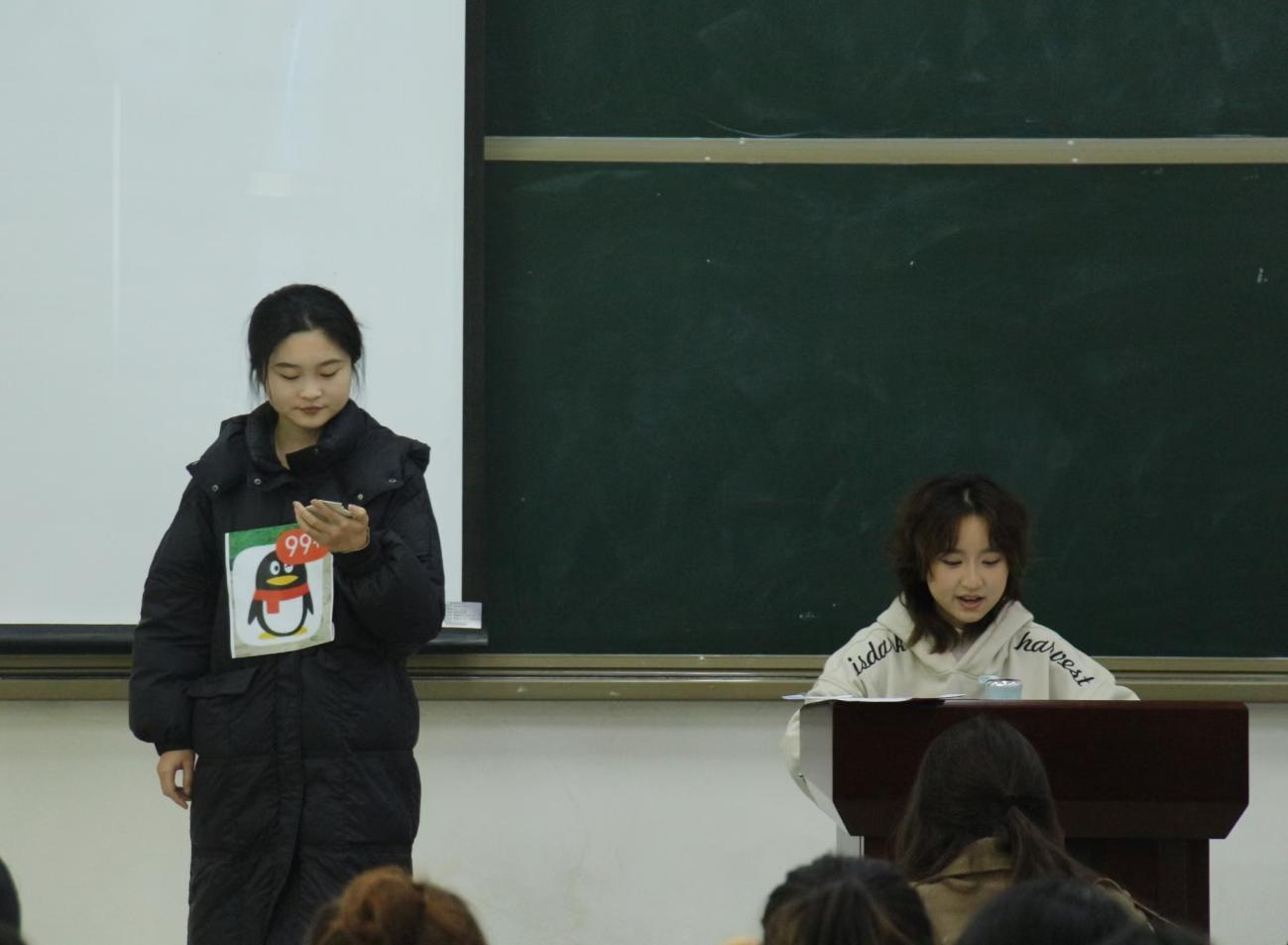心理学一班学生分为八组,比赛顺序由组长抽签决定,在比赛中,各组分别用PPT、情景剧、新闻主持和角色扮演等形式展现对于心理学知识在服务社会方面的认识。各组内容涉及社会普遍关注的人际关系、外貌焦虑、食品安全等问题。第一组用情景剧“时间都去哪了”讲述人物面对手机各种吸引在时间管理上的挑战,展现心理学知识中认知调整和的体现,告诉我们攀比是一种正常的心理现象,但要更多关注自己内心的幸福感和归属感;第五组用新闻主持以及PPT的方式,将网络热点“被‘伪精致’掏空的年轻人”和心理现象结合,强调了因缺少外界的认同感,年轻人在网络空间精心打造自我形象寻求某种价值肯定,引导年轻人关注现实自身发展,在追求外在精致的同时更关注内心精神世界的精致;第八组以真实感人的心理情景剧将社恐形象展现得淋漓尽致,社交恐惧是一种情感挑战,但朋友的鼓励像光一样照耀他们灰暗的世界,使他们具有迈出一步向前进步的勇气与力量。