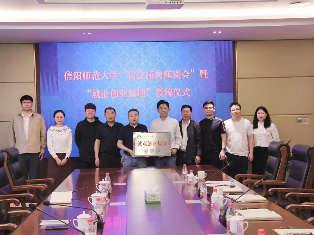 缑星代表学院与信阳同合车轮有限公司人事部经理杨召利签订了合作协议书,房加帅代表学校授予“信阳师范大学就业创业基地”牌匾。