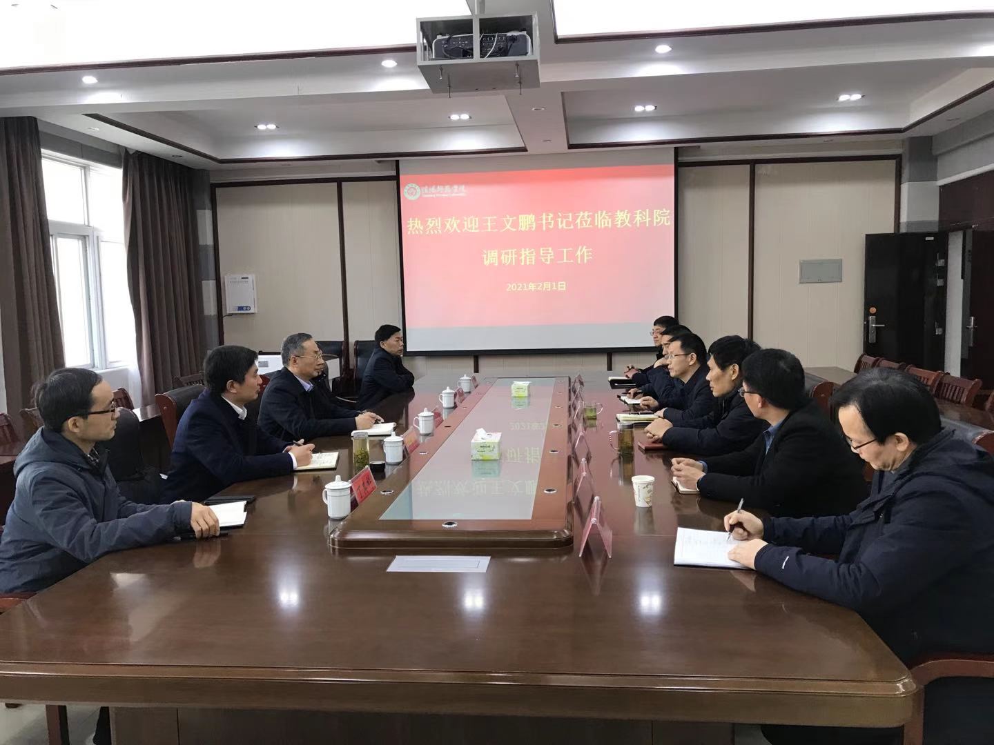 时间:2021-02-03 10:07:54 来源: 作者: 阅读: 次2月1日下午,校党委书记王文鹏到教育科学学院开展调研指导工作,深入了解教育科学学院的发展情况。校党委副书记王文臣、副校长余本海陪同调研,校党委办公室负责人、教科院领导班子全体成员参加调研座谈会。
