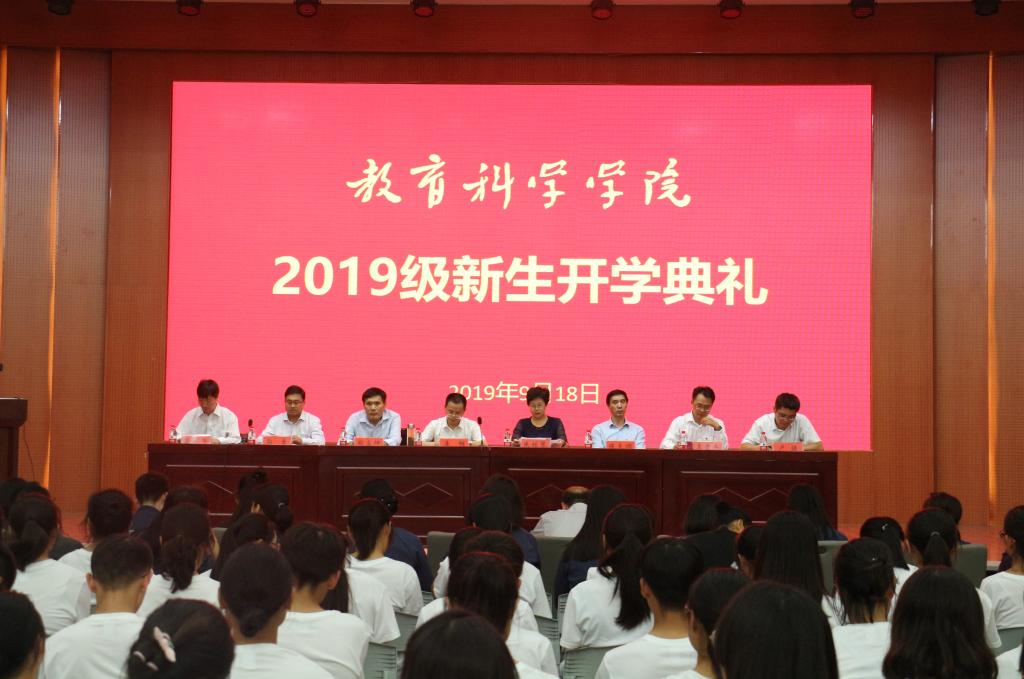 9月18日晚,信阳师范学院教育科学学院2019级新生开学典礼在逸夫楼报告厅隆重举行。院党委书记李辉,院长朱桂琴,课改所所长郑立坤,副院长陈天顺、郭勇,党委副书记李贵杰,院长助理岳鹏飞、卢强,各教研室老师以及2019级全体新生参加典礼。典礼由党委书记李辉主持。