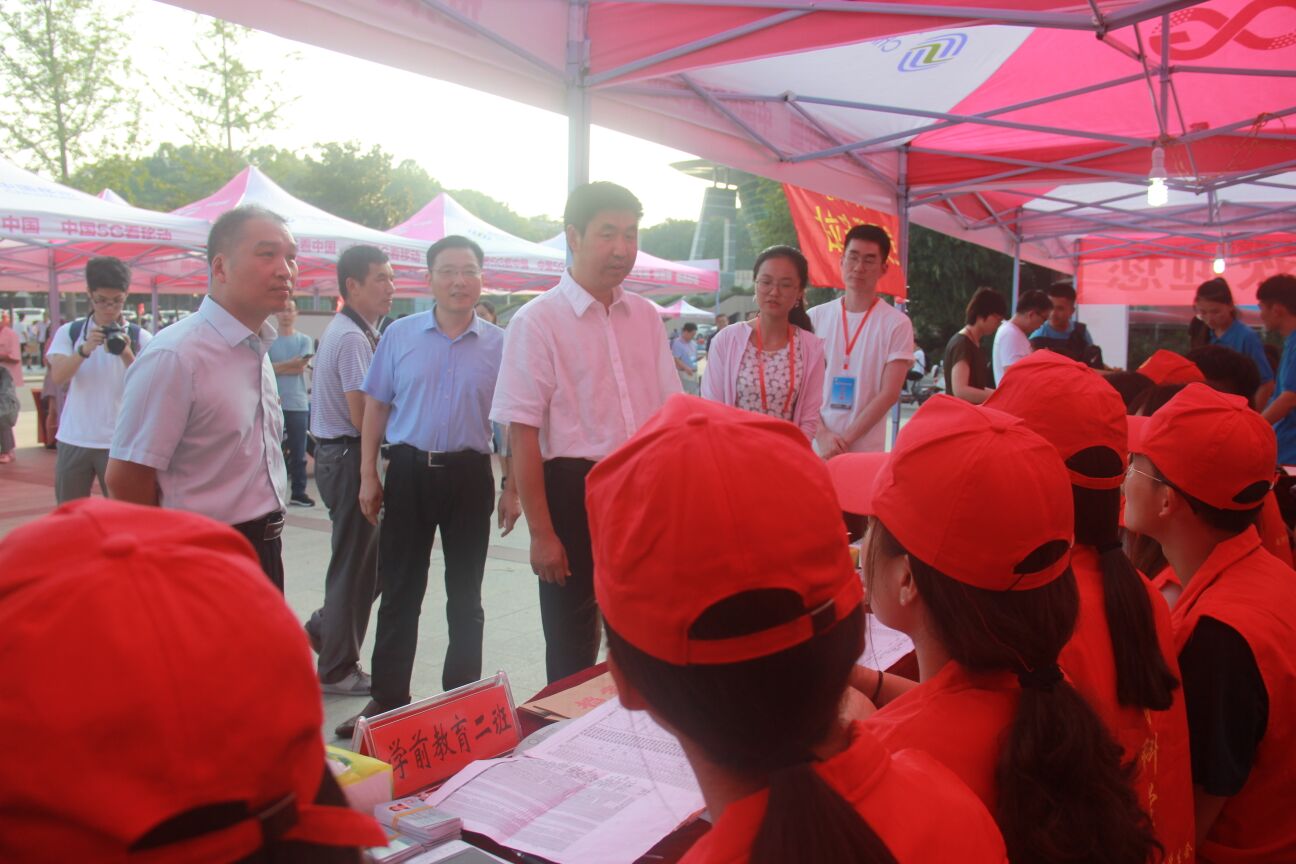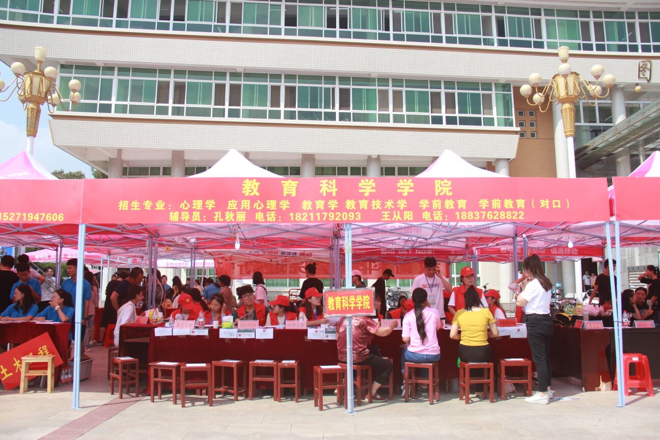 时间:2019-09-08 08:44:23 来源: 作者: 阅读: 次金秋九月,喜迎新生。9月6日,信阳师范学院教育科学学院于本校新图书馆楼前展开迎接2019级新生工作。校党委书记宋争辉,院党委书记李辉、党委副书记李贵杰、思想政治与就业指导教研室副主任瞿浩、团委老师朱方、牛洁楠亲临迎新现场指导工作并向新生和工作者们表示慰问,2019级班主任王从阳、田园老师也在迎新现场迎接新同学的到来。