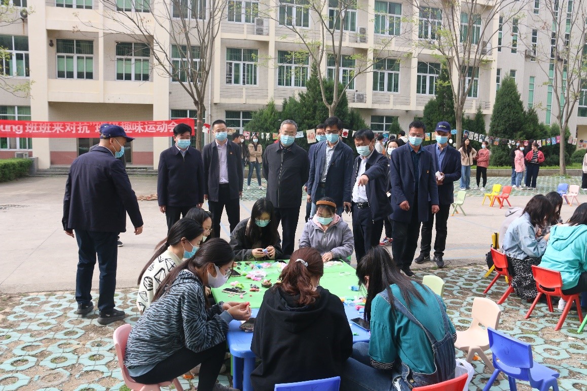 疫情就是命令,防控就是责任。清明节假期期间,教育科学学院开展一系列丰富多彩的校园文化活动,教育引导青年学生学习习近平总书记有关讲话精神,增强防范意识能力,加强体育锻炼,舒缓心理压力。校党委书记王文鹏、副校长陈登报带领有关部门负责同志亲临现场看望学院师生,院党委书记房加帅、院长何安明、党委副书记董银银、副院长郭勇、孙天义陪同。