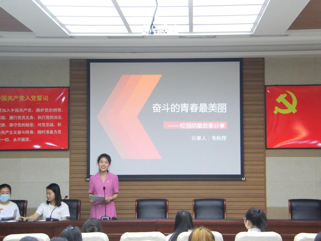国家奖学金获得者教师教育学院张秋雨、校园明星文学院韦秋存、自强之星物理电子工程学院薛颖珊,作为本次活动的宣讲人向同学们讲述了她们的青春故事。张秋雨以“扬鞭追梦,不负韶华”为题进行讲述,鼓励同学们不断争取进步、用汗水浇灌理想、用奋斗放飞希望、用信念实现梦想,让青春绽放出最美丽的光芒。韦秋存用成长的故事、信仰的故事、爱与温暖的故事,分享了自己奋斗的青春,以“种一棵树最好的时间是十年前,其次是现在”与同学们共勉。薛颖珊以“珊烛的自强之路”为题讲述了自己的成长历程。她以乐观的态度,坚毅的步伐,在自强的路上坚定前行,成为一束光,散发着自身的暖和亮,让同学们备受鼓舞。三位同学宣讲完毕后,朱方与同学现场交流,同学们对触动自己的地方纷纷发表感悟。朱方鼓励同学们学习学姐身上的优秀品质,戒骄戒躁,澄澈心灵,努力进取,让自己也在榜样的路上坚定前行,朝着自己的目标不断奋进。最后,对三位宣讲同学表示感谢,期待她们扬帆奋楫,再度起航。