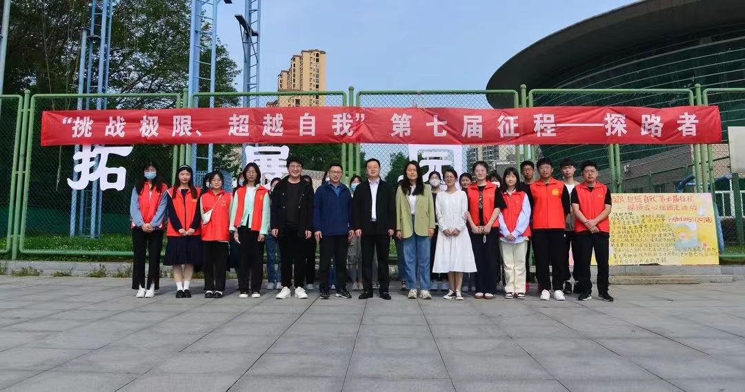4月23日,由我校学生会、大学生心理健康辅导协会、教育科学学院学生会联合举办的“挑战极限、超越自我”第七届征程—探路者心理团建活动在青年广场举行。教育科学学院党委副书记董银银,学生处心理辅导科科长袁战阳,校团委组织部部长余艳锴,教育科学学院团委书记牛洁楠亲临活动现场指导,并对此次活动给予充分的肯定。