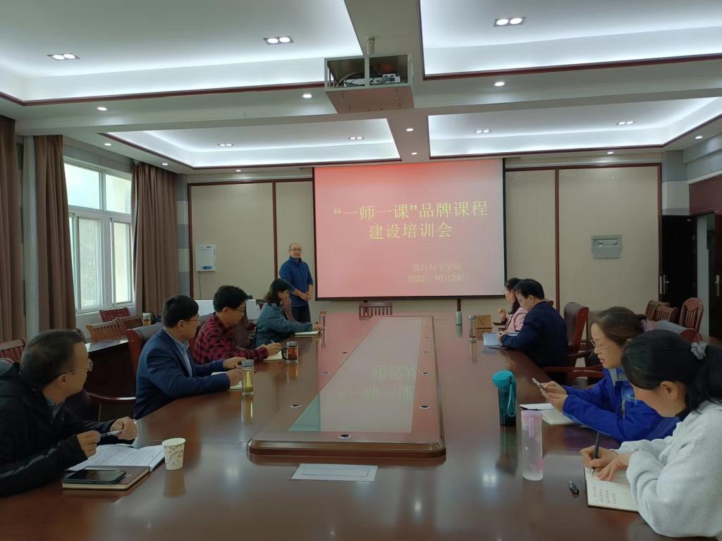 为落实信阳师范学院“一院一品”工作要求,进一步推动我院“一师一课”品牌课程建设,积极开展课堂教学改革,推动信息技术在课堂教学中的有效应用和深度融合,我院遴选了首批“一师一课”品牌课程10门,并于2022年10月29日在教科楼402会议室举行“一师一课”品牌课程建设培训会,院党委书记房加帅,副院长郭勇、孙天义,专任课教师刘琦、郑雪松、杨建朝、邢思珍、刘萱、马金焕、汪媛媛参加了培训会。培训会由副院长郭勇主持,刘琦老师主讲。