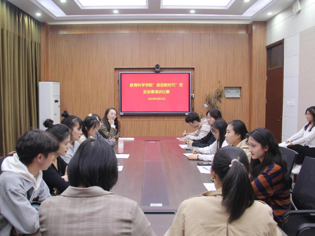 为了弘扬党的优良传统,让同学们更加全面、深刻地了解党的优秀事迹,10月25日,由教育科学学院学生会举办的“奋进新时代”党史故事演讲比赛决赛在教科楼303会议室举行。